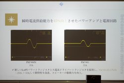 これにより、定格出力は60W+60W(8Ω)、瞬時電流供給能力はPM7005の約1.45倍となる32Aに達し、素早い立ち上がりや大きなエネルギーを必要とする低音の再現力、空間表現力が向上したという。