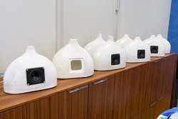 Alina(アリーナ)は、信楽焼によりハンドメイドで製造されるスピーカー。製品名のAlinaは女性の名前で、肩口から首にかけての女性的な曲線を持つデザインから命名したという。カラーは標準で白と黒を用意。釉薬により仕上げを変えられることから、価格の異なる限定モデルも予定している。