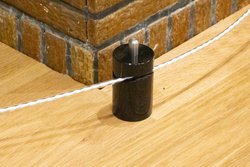 ケーブルスタビライザーのS-Castは、スピーカーケーブルや電源ケーブルなど、各種ケーブルを保持することが可能。複数個を使用することでケーブルを完全に浮かせ、フロアの振動から隔離することができる。