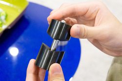 本体の重さは1つあたり602gで、直径は4cm。素材にはスチール(SS400)を採用しており、芯棒にはステンレススチール(SUS303)を用いている。スチール製の重量あるクランプ部(244g)でケーブルを挟み込む仕様で、サイズもコンパクトなことから、導入しやすい点も特徴となっている。