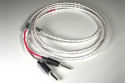 絶縁体にはジュンフロン被覆を採用。さらに線材に純白のジュンフロン被覆を施し、シースには柔軟性のある透明PVCを用いることで、見た目の美しさも追求している。線径の細さにもこだわり、「良い音のケーブルは太い」という印象の払拭を狙う。ケーブル端子部は銀メッキのバナナ端子で、1mにつき25,000円(税抜)にて長さの特注も行える。