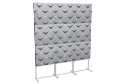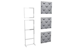 アコースティックスタンドArt Standは、デザインを意識したルームチューニングアイテム。パネルにはスウェーデンOffect社の業務用アコースティックパネル「Soundwave」を採用し、これをオリジナルデザインのアルミフレームに装着している。