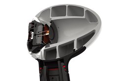 3Dプリンティングでなければ実現できない構造として「ヘリカル・トランスミッション・ライン」という渦巻状の構造を本体内部に形成。全長1.6mの音導管をキャビネット内にコンパクトに収めることにより、本体サイズを抑えながら、サイズを超えた低音を追求している。