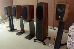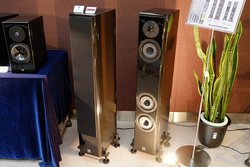 アクシスのブースでは、同社が取り扱う各種ハイエンドオーディオ製品が並ぶ。特にFYNE AUDIOの2.5ウェイ・フロア型スピーカー「F502 SP」と、2ウェイ・ブックシェルフ型スピーカー「F701」は年内発売を目指す最新モデルとなり、会場でその音を確認することができる。