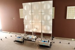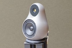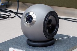 フラグシップスピーカー「14EH」(480,000円/ペア・税抜)が小型であり、低域を無理に誇張しない音作りであったことから、それを補うマッチングを想定して登場するサブウーファー「Foundation 500」もまた球形だ。Scanspeakの8インチユニットを左右に各1基搭載する構成で、鋳鉄を用いるため直径32cmながら質量25kgとなる。Foundation 500は速度の早い低音を目指しているとしており、14EHと組み合わせた2.1chシステムの音を聴くことができた。