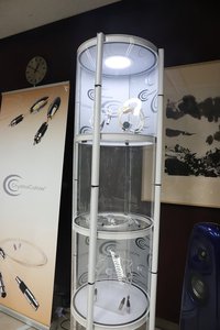 ステラでは、Wilson Audioの最高位モデル「CHRONOSONIC XVX」を初展示。4ウェイ・7ドライバーシステム、高さ187cm/質量310kgという重量級モデルで、Constellation Audioのアンプ類や、STROMTANKの電源と組み合わせて試聴が行われていた。