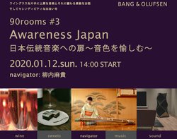 バング&オルフセン日本橋にて、上質な音楽とお酒、スイーツとのセレンディピティな出会いをテーマとしたイベント、「90rooms」の第3回目が、2020年1月12日(日)に開催される。今回のテーマは、「Awareness Japan 日本伝統音楽への扉」。
