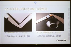 “12 OSEシリーズ”のチューニングにあたっては、主に内部回路のパーツおよび筐体素材のグレードアップという手法がとられている。内部回路のパーツに関しては、ベースモデルの音のキャラクターを残すためコンデンサー類にはあえて手を付けず、抵抗器だけに着目。SA-12 OSEではアナログ出力回路の35ヶ所、PM-12 OSEではプリアンプ回路の17ヶ所を高品質な金属皮膜抵抗に置き換えることで、音のキャラクターは変えず滑らかさを強調したという。