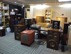 静岡県浜松市のオーディオとホームシアターの専門店「椿オーディオ」。浜松市を走る遠鉄電車・通称「赤電」の八幡駅から西へ徒歩5分ほどの場所に位置する。1Fは白物家電を取り扱うパナソニックショップ「椿テレビ商会」、そして「椿オーディオ」として中2Fに最新のハイファイオーディオを、そして2Fに中古モデルとホームシアタールーム、イベントルームを展開している。以前はハイファイオーディオ、シアターの展開をすべて2Fに集約していたが、1ヶ月間をかけた改装を実施し2018年12月に現在の構成とした。店の入り口から商品の広がりを感じさせる、ワクワク感が高まるつくりとなった。