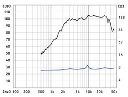 入力端子は銅切削によるバナナプラグ対応の金メッキターミナルで、内部配線にはφ1.4mmの銅・銀合金単線を採用。ダークブラウンに着色をしたウォールナット突板仕上げのトゥイーターベースも付属する。インピーダンスは8Ωで、再生周波数帯域は7 - 40kHz。また、出力音圧レベルは104db/W(1m)で、総重量は5,150g。