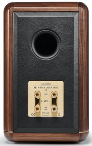 同社が持つ伝統技術と音楽性を最先端テクノロジーと融合させた初代ミニマ・アマトールのリバイバル作品としており、新設計ながら、初代を彷彿とさせる輪郭や質感などを継承したデザインを採用。キャビネットには厳選した無垢ウォルナット材を使用し、職人の手で一つひとつ成形することで、ブックシェルフ型の概念を覆す低域再生や広い音場再生能力を実現したという。