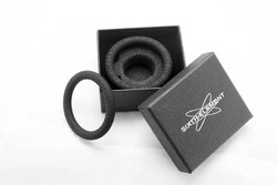 「R-755 3D Quantum Ring」は、信号源を最適化してノイズを減らす効果があるというリング状のアクササリー。内径が42mmあり、各種ケーブル類やスピーカー端子、真空管の6550/KT88などに通しての使用が可能。すでに発売中の、内径75mmの「R-575 Quantum Ring」と内径27mmの「R-639 3D Quantum Ring」とあわせて合計3種類のラインアップが揃うこととなった。