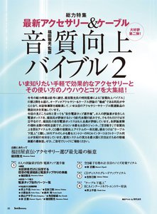 さらに総力特集は、前号でも大好評の福田雅光氏が監修する「音質向上バイブル」第2弾。今回の目玉企画は電源タップ選手権“。福田氏+7人の評論家がおのおののアイデアと素材で電源タップを自作。できあがった製品を福田氏が評価し、福田氏自身が自作した電源タップは7人全員が評価している。前代未聞の企画の行く末は……?