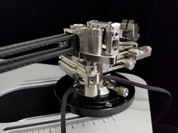 針先の位置調整は、リフターのUP/DOWNスイッチも兼ね備えたレーザー・タンジェント・ツールを使用。針先が正確な位置にある場合、レーザー光でスタイラスチップが点として光るので、目視での位置設定が容易になる。また、高さのあるプラッターにも対応できるよう、最大26mmまでの高さと角度の調整が可能。なお、ARM-MP12 MkU等に搭載されていたリフター・レバーは搭載されていない。