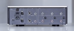 入力はRCAアンバランスのみで、MC2系統、MM1系統を搭載。信号経路内のパーツを極力少なくし、伝送信号の短縮化を測っているという。出力はRCAアンバランス、XLRバランスを各1系統搭載。サイズは480W×467D×167Hmm、質量は30kg。