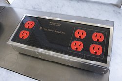コンセントは6口搭載されているが、インレットに近い方の2口が「大電流機器・高ノイズ機器」用、遠い方の4口が「小電流機器」となる。コンセントはホスピタルグレードで、ロジウムメッキ仕上げとなっている。