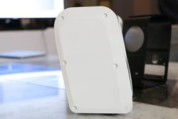 渡邉氏は本機について「コンパクトなので音楽再生だけでなく、テレビや昨今増えてきているライブ配信の視聴、ビデオ会議など幅広い場面で使用可能。フルレンジユニットで横向きに置いても指向性が変わらないため、テレビの下部にサウンドバーのような感覚で設置するのもおすすめ」だとアピール。