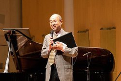 この日のマイクセッティングは入交氏が担当。舞台の左手にピアノ、右手にパーカッションが設置され、舞台中央の高さ3m程度の位置に5本のマイク、さらに2mほど上に5本のアンビエンス用のマイクが設置された。配信では、このマイクの真下で聴いているような体験を意識したマイクセッティングがなされているという。