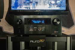 公開実験は、まずホール内で生のライブを体験したのち、ホワイエにて構築されたサラウンドシステムで曲を聴くという段取りで行われた。こちらではAURO-3Dをフルで体験できるよう、デノンのAVアンプ「AVC-X8500H」と、GENELECのスピーカーを活用している。