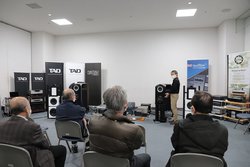 Room Dでは、アッカ、TAD、ナスペック、エイ・アンド・エム、ハーマンインターナショナルがデモ。TADのデモ時には、スピーカー「TAD-CR1TX」に関する鋭い質問も飛び出し、少人数だからこその、密度の濃いデモンストレーションが展開された。