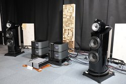 Room Eでは、オルトフォンとシーエスフィールド、B&Wがブースを展開。オルトフォンはアコースティックソリッド、シーエスフィールドはKUZMAを中心としたアナログシステムのデモを行なった。CLASSEのモノラルアンプ4台でB&Wの800 D3を鳴らすという贅沢なシステム構成となっている。