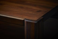 天/底板は厚さ40mm、棚板は厚さ25mmで、表面にウレタン塗装を施すことで耐熱性を向上。細部にわたるきめ細やかな面取り加工と重厚感あふれる外観により、高級ファニチャーと呼ぶのに相応しい逸品に仕上げたとしている。