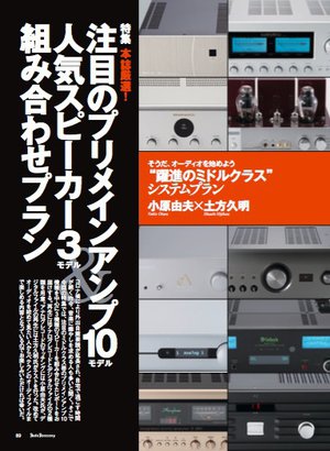 総力特集では「躍進のミドルクラス・システムプラン」をお届け。昨今、飛躍的な進化を続けるミドルクラスのコンポーネントをクローズアップ。その核となるプリメインアンプの20万円から50万円位の価格帯の中で、いま最も注目すべき10モデルを選出。これと組み合わせてスピーカーとプレーヤーでトータルで約100万円以内で手に入れることのできるシステムプランを提唱している。