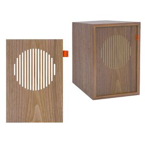 ウォールナット突板で仕上げられたレトロデザインで、専用スピーカーグリルとの組み合わせにより、和・洋いずれのインテリアにもマッチするとアピールしている。