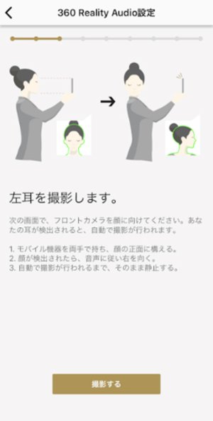 360 Reality Audioはすべてのヘッドホンで体験することができるが、ソニーの「認定ヘッドホン」ではより臨場感のある体験が実現できるとされる。「Headphones Connect」アプリで耳を撮影することで、頭部伝達関数を瞬時に計測。個人の耳の形状とヘッドホンの特性に音源を最適化し、パーソナライズされた音響体験を提供する。