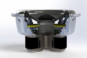 加えて、ジェットノズルのようなアルミダイキャスト製センターコーンおよびアウターリングが音を12.5mmの開口部へ集中させ、ダイアフラムの振幅を抑え、歪みを最小限にしている。
