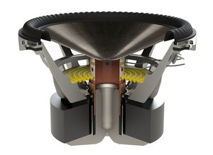 低域のウーファーは、ロングストローク・ユニボディのCARBON-Xコーンを搭載。オーバーモールドされた特許技術のARTエッジ、垂直マウントシステム、Advanced SHOCK-MOUNTアイソレーション、通気性のあるApicalフォーマーを備えた1.5インチの高耐熱多層ボイスコイルを搭載し、ディテールとパワーを両立するという。