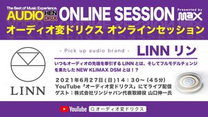 マックスオーディオは、6月27日の14時30分より、リンをフィーチャーしたオンラインイベントを配信する。同社のYouTubeチャンネル「オーディオ変ドリクス」での配信となり、ゲストとして、リンジャパン社長の山口伸一氏が登場する。