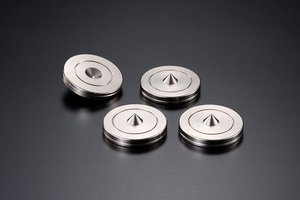 オーディオ機器の付属スパイクは強度や硬度が十分ではなく、床面振動の影響を充分に対策できないとして、アルミニウムよりも硬い日本製工業グレードの炭素鋼(S45C)を採用するとともに、特殊硬質処理を施すことで、高強度で高硬質を実現したとする。