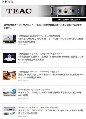 TEACの特設ページがオープン! 老舗オーディオブランドによる製品の詳細レビューなど満載