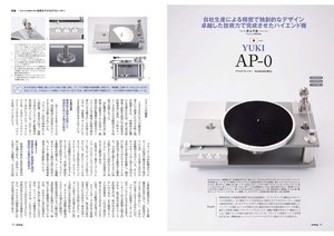 今号の表紙を飾るのは、由紀精密の糸ドライブ式アナログプレーヤー「AP-0」です。