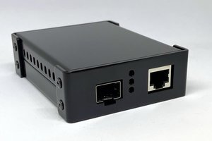 光 - LANのメディアコンバーターは、ネットワークオーディオにおいて、SFPポートを搭載するネットワークプレーヤーとの接続や、“光アイソレート”を実現するために必要なアイテムとなっている。この入替ケースは、メディアコンバーターの筐体を強度のあるスチール製とすることで、ネットワーク環境の改善を狙ったもの。