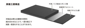 異なる3つの素材を組み合わせる異種三層構造により、一度の施工で制振・吸音効果を得られるとする制振・吸音材。素材には、高比重・高耐熱のヴァージンブチルゴム、制振用アルミシート、吸音性能に優れたNBRスポンジを採用する。