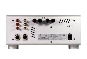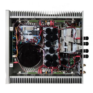 入力段とドライバー段はシングルエンドクラスAで動作する真空管方式で、低ノイズの双三極管「6H30」をチャンネルあたり1本搭載。出力段は特性を揃えた3つのMOS-FETで構成されるシングルエンド回路を2基プッシュプル動作させ、180W(@4Ω)、110W(@8W)の出力を実現。また前段と出力段の間に自社設計・製造の広帯域段間トランスを採用し、インピーダンスを理想的にマッチングさせることにより信号のエネルギーロスをなくすとしている。