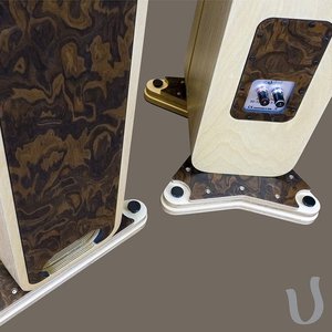伝統のバーチ積層材によるキャビネットを2分割し、接合面に新世代アクリルパネル「Fenix」を挟み込む形で使用。これにより内部圧によって生じる構造の潜在的な変形の低減と不要な振動モードの発生を抑えるとしている。