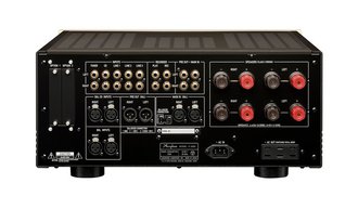 電源部には新開発の大容量トロイダルトランスを、また40,000μF/100Vの平滑用アルミ電解コンデンサーも搭載。コンデンサーは材料と内部構造を吟味した特別音質カスタム仕様となっている。パワーアンプ部はパワートランジスター5個を並列駆動となっており、定格連続平均出力は、同社プリメインアンプ史上最大の240W/8Ω、320W/4Ωを実現した。