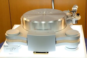 またプラッターは磁石で浮かべるマグネフロート機構で、重量級プラッターながら軸に負担をかけないよう設計された。シャーシはアルミとMDFのサンドイッチ構造。フッターは4脚で本体を支え、キャップを外すことで最大3本のトーンアームを設置できる。