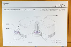 Grandioso T1は2年ほど前から開発が行われていた磁気駆動の非接触型ドライブ機構「ESOTERIC MagneDrive System」を搭載。プーリーに磁石を搭載し、磁気駆動でプラッターを回転させるもので、非接触型のため振動が伝わらず、ベルトのたわみに起因する偏差がなくなることなどの利点があり、高い回転精度を実現するという。