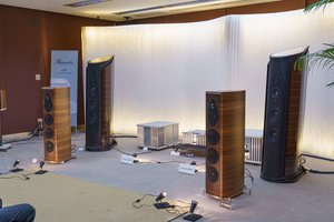 機材は1時間毎に入れ替えられ、上記のほかにもFranco Serblinのスピーカー「Ktema」、Bespoke audioのプリアンプ「Passive-Preamp」といったバリエーション豊かな構成で音楽を試聴できる。また、今年6月に発売したestelonの新フロアスピーカー「YB mkII」(税込275万円/ペア)も出展。「Forza」の設計から得た知見を活かして開発されたというミドルクラスモデルに注目が集まった。