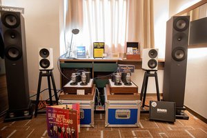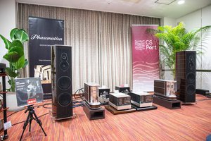 アゼリアルームでは、PhasemationとCSポートという国産真空管ブランドがデモンストレーションを展開。スピーカーにはソナス・ファベールの「Amati Tradition」を駆動。Phasemationは6筐体式という前代未聞のフォノイコライザー「EA-2000」に込めたブランドの技術力を中心に解説。