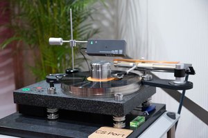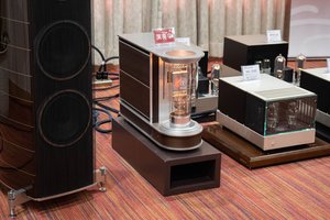 CSポートの目玉は、大型三極管「212E」を活用したモノラルパワーアンプ「212PAM2」。巨大な真空管が独特の存在感を漂わせる。プレーヤーには同社の「TAT2」、プリアンプ「C3PR」、フォノイコライザー「C3EQM2」を組み合わせ、アクセサリーとして大ヒットを飛ばした除電アイテム「IME1」も活用しながら、リアルで温かみのあるアナログサウンドを展開していた。