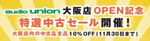 オーディオユニオンは、関西初店舗となる「オーディオユニオン大阪店」を本日11月25日(木)にオープン。これを記念して、大阪店では「特選中古品セール!」を開催している。