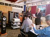 新試聴室には、西蒲田試聴室でも好評を得ていたDYNAUDIO「C4」とソニーのマルチスピーカーなどを据えて、マイ柱上トランスの効果はもとより、出水電器が主宰するALLIONの製品群や、アイソレーション電源トランス、オーディオ専用アース、絶縁トランス、ELIIY Power蓄電池、デジタルオーディオプロセッサーDEQXなどの効果を比較試聴できる予定となっている。