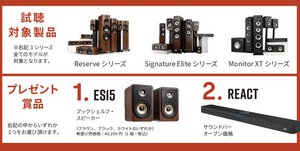 Polk Audioの対象スピーカーを店頭で試聴し、その感想をTwitterでツイートすることで、Polk Audioの製品が合計3名にプレゼントされるキャンペーン。賞品については、ブックシェルフスピーカー「ES15」もしくは、サウンドバー「REACT」のどちらか1つを選べる。