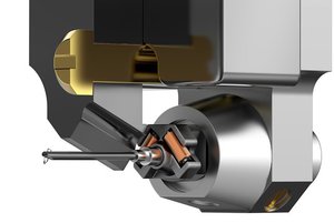 φ0.28ソリッドボロンカンチレバーの先端からコイルまで、支点に向けて段階的に太くなるステップドパイプ構造を採用。カンチレバーとアーマチュアの接続部が二重構造となるため剛性が高まり、カンチレバーの強度の向上と不要な振動の抑制効果を発揮するという。