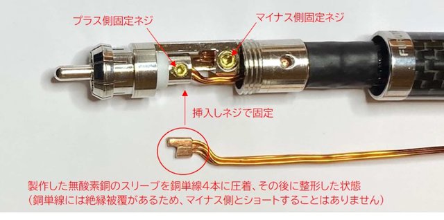 プラグは芯線とのコンタクトをベストにすべく、デリケートなネジ止め式を採用。これもケーブル部のネジとコネクトする部分に特性の無酸素銅のスリーブ圧着させるなど、細部にわたって非常に手が込んでいる。なお、製作時間は通常モデルの4倍かかるという。